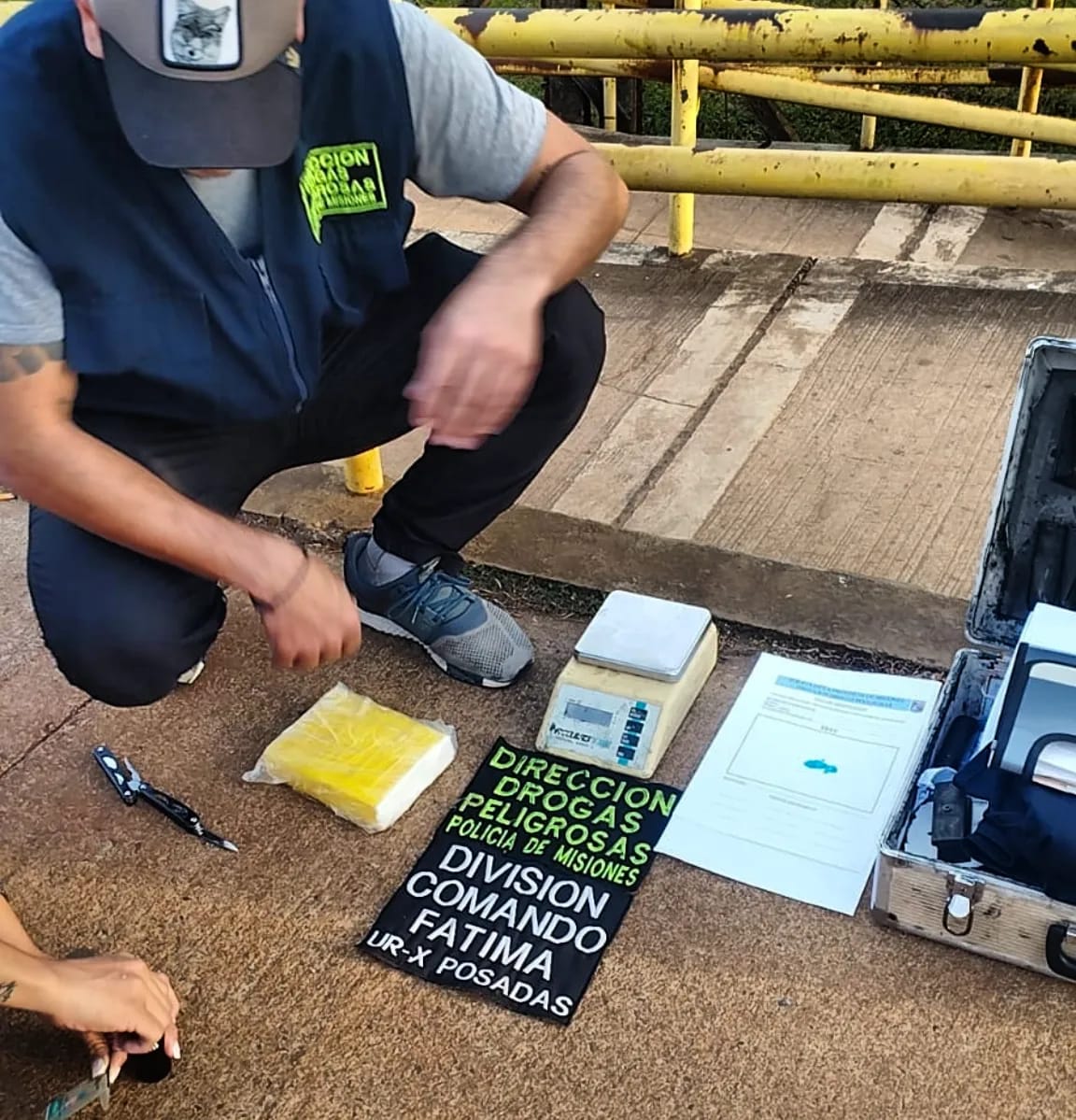 Allí, entre sus pertenencias, los agentes encontraron un paquete envuelto en cinta amarilla. Al realizar un test reactivo, se confirmó que el paquete contenía clorhidrato de cocaína, por lo que por disposición del Juez Federal, secuestraron la droga y detuvieron al implicado.
