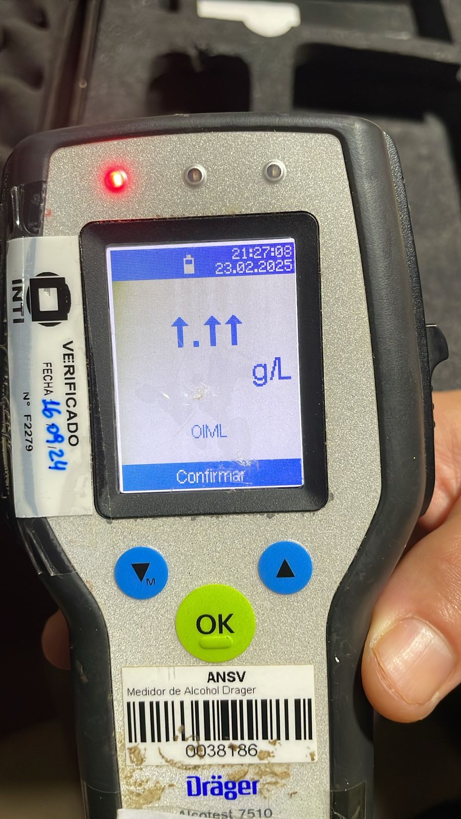 En ese momento, se le realizó el alcotest correspondiente, el cual dejó de mostrar los números en la pantalla, debido a que superó el máximo que logra registrar el aparato. Ante esta situación, el personal policial procedió a la detención del chofer y al secuestro del vehículo.