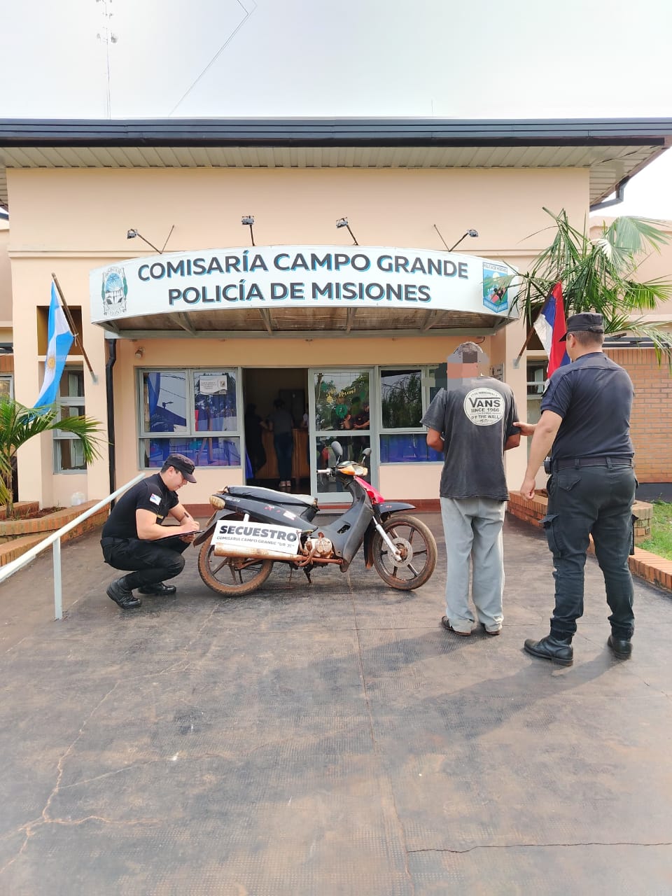 Primeramente, durante un control policial en Campo Grande, cerca de las 10 horas, los efectivos detuvieron a un motociclista de 46 años y le secuestraron una Corven 110 cc. Al ver las documentaciones, establecieron que la numeración del motor presentó anomalías y tras averiguaciones determinaron que el motor colocado en el rodado tiene pedido de secuestro por un robo en Oberá.