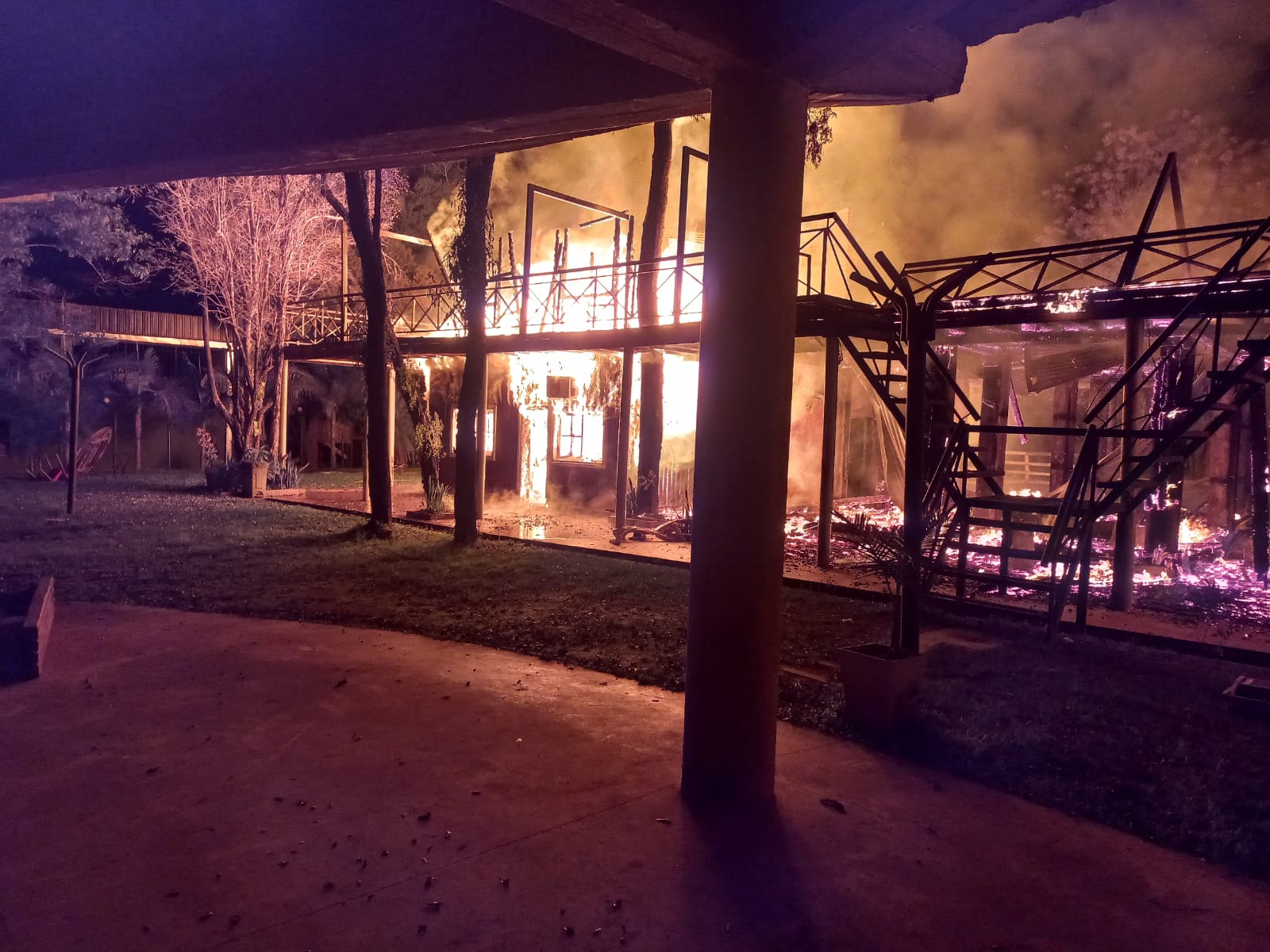 En la madrugada de este jueves, cerca de las 04:30 horas, se desató un incendio en el complejo turístico ubicado en la costa del Río Uruguay, en el paraje 11 Vueltas de Mojón Grande. Las llamas se propagaron con rapidez y consumieron por completo la estructura de un salón de 30 por 12 metros y diez cabañas, siete en planta alta y tres en planta baja construidas en madera con techos de zinc.