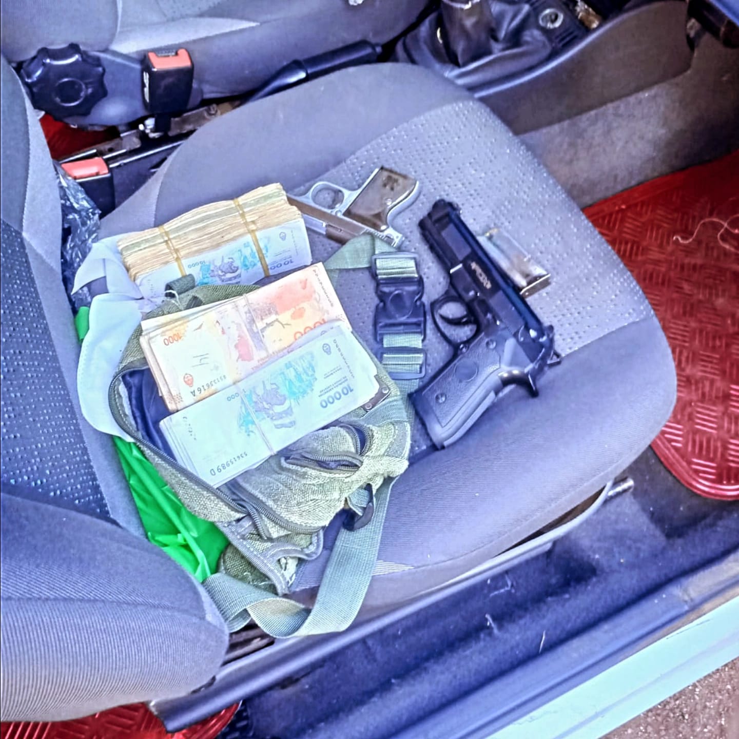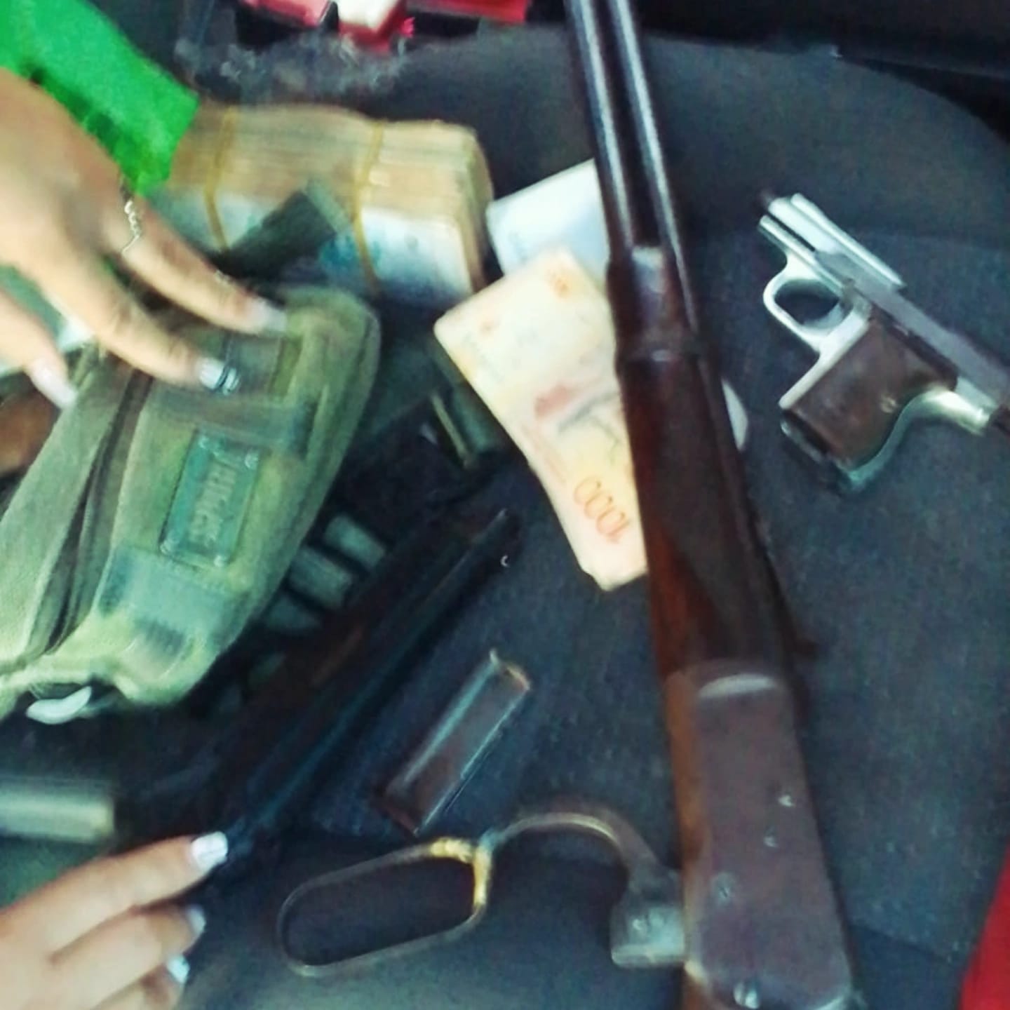 Posteriormente, por orden judicial requisaron un vehículo Chevrolet Celta, en cuyo interior secuestraron una escopeta Winchester, una pistola calibre .22, una pistola 9 mm marca, casi un millón de pesos argentinos, 12.000 guaraníes y 1000 pesos colombianos.