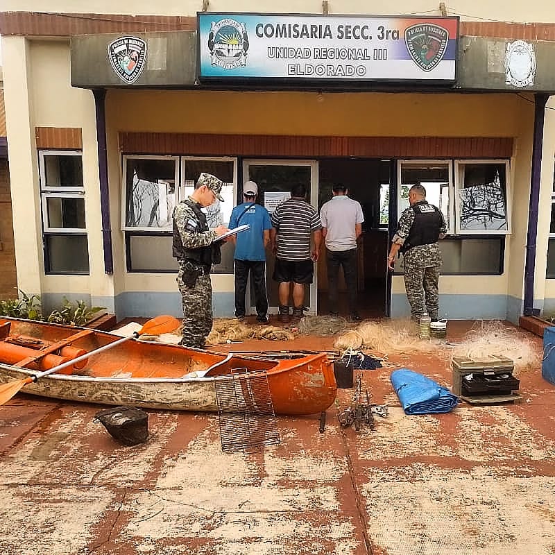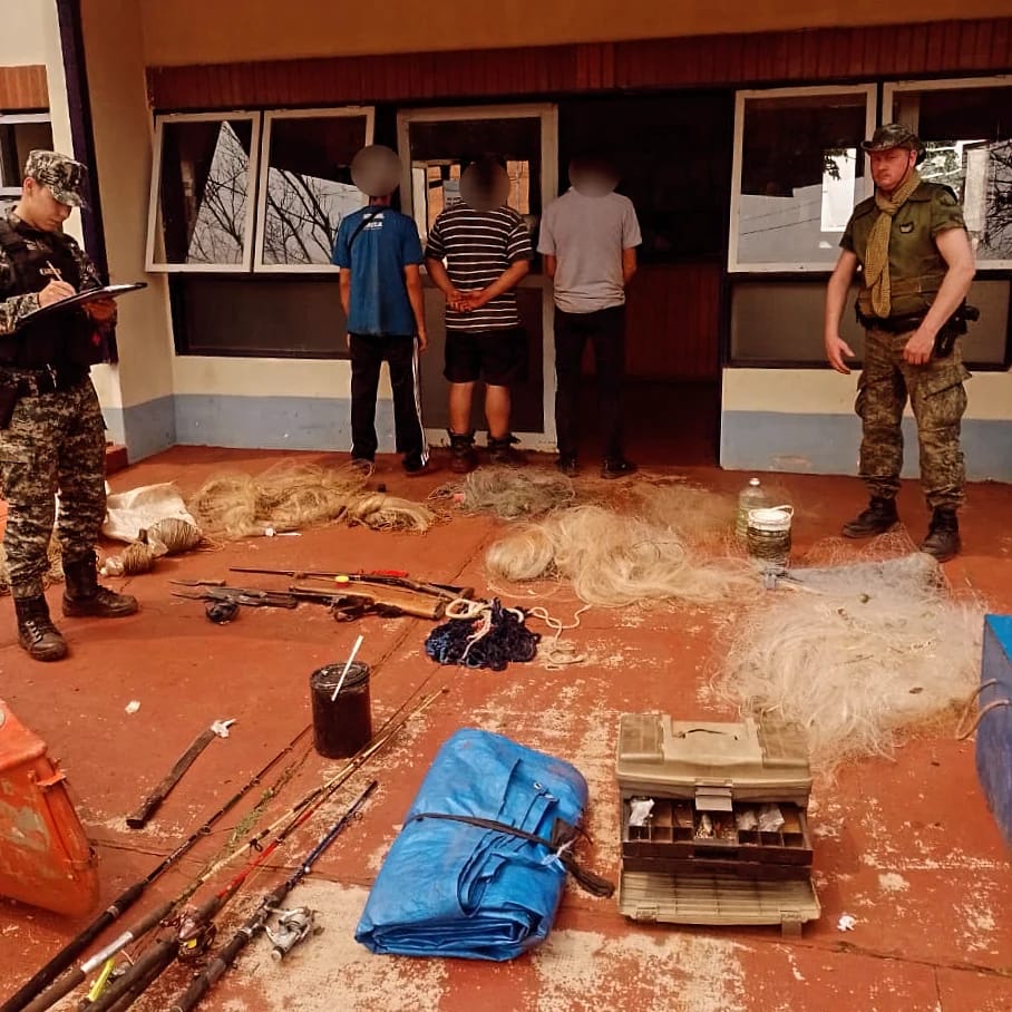 Ante lo detectado por los uniformados, los hombres fueron detenidos y trasladados a la Comisaría Seccional 3ra de la UR-III de Eldorado. Además, se incautaron todos los elementos destinados a la caza y pesca furtiva, quedando depositados en la dependencia policial a disposición de la justicia.