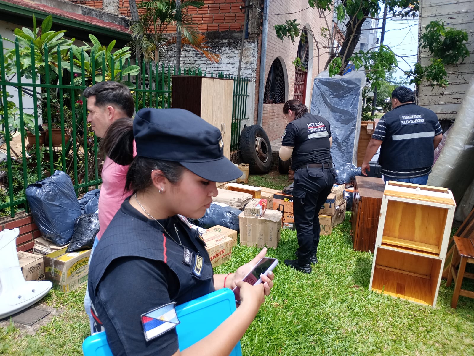 Ante esta situación, los investigadores realizaron amplias pesquisas y, con la orden del Juzgado de Instrucción N.º 6 de Posadas, esta tarde llevaron a cabo tres allanamientos simultáneos en domicilios ubicados en calle Marconi, avenida Mitre y calle Trípoli. Durante las irrupciones, se secuestró un camión junto a los bienes sustraídos.