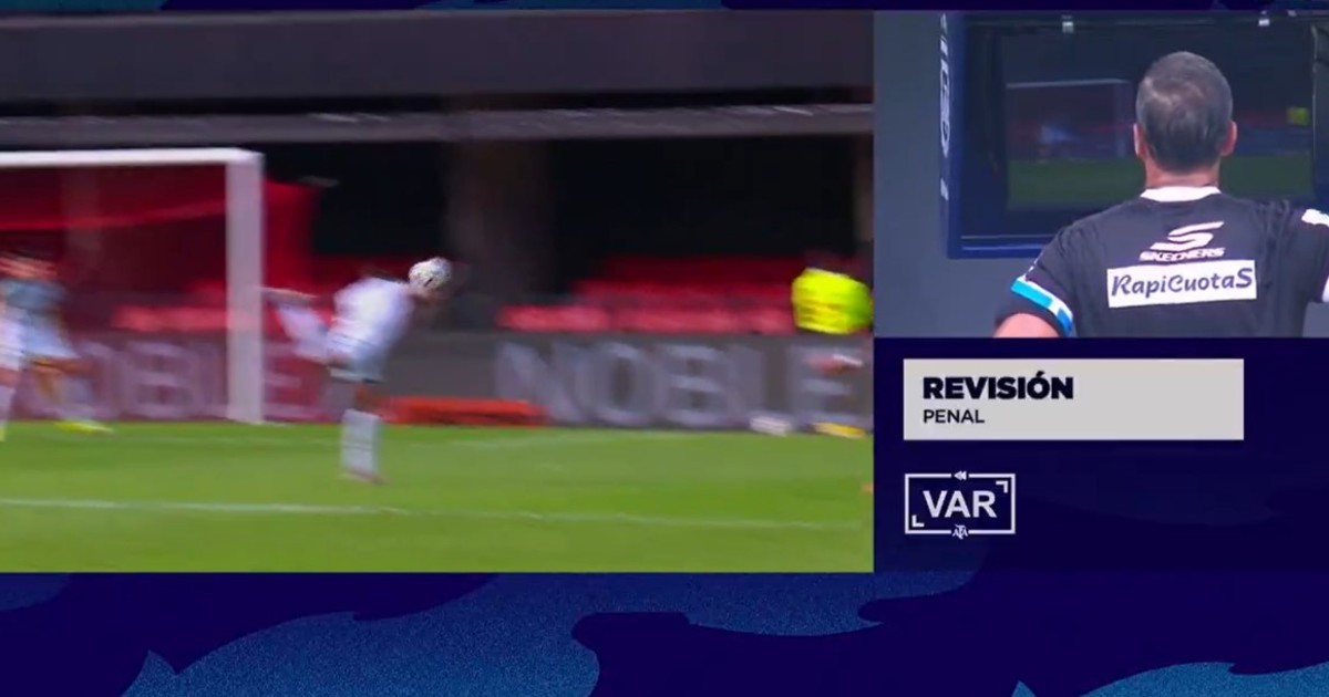 Lazo, de Tigre, bajó la pelota con el brazo izquierdo extendido tras un córner. El referí, Pablo Dóvalo, no lo advirtió, y desde la cabina del VAR, a cargo de Bruno Amiconi, no convocaron al juez central.